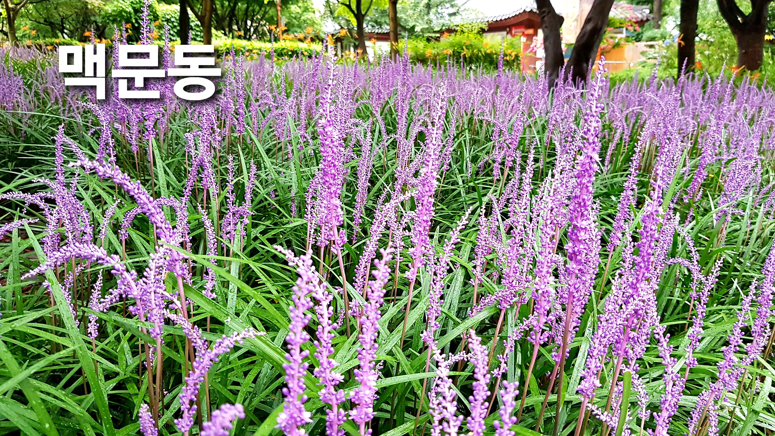 *대구광역시 중구 경상감영공원에 암모니아 정화능력 1위, 공기정화능력 36위, 포름알데히드 정화능력 17위, 여름꽃의 대표색인 보라색 맥문동 꽃이 군락을이루어 아름답게 피었습니다.